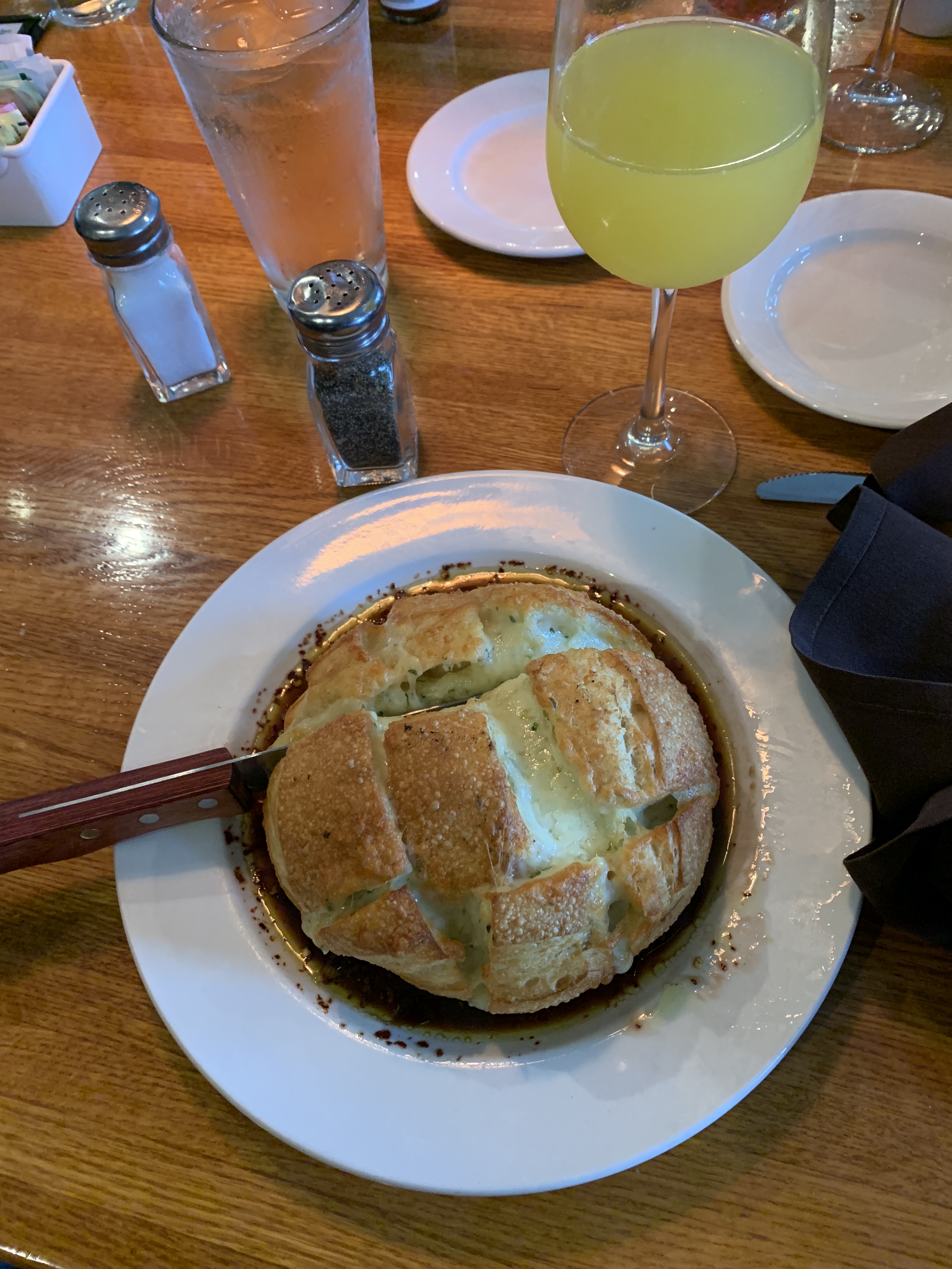 Now, to the right, you will see this beautifully sliced sourdough loaf with melted cheese perfectly in-between each square that sat in a rich balsamic vinegar 🤤. After viewing pictures of this item via google images—trying to get an idea of what these menu items look like—I decided that I have to try this.